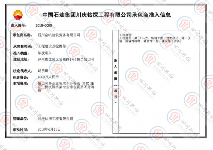 中石油承包商準(zhǔn)入